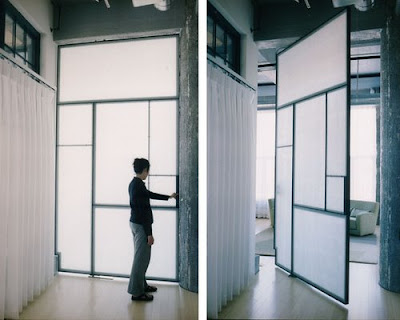 I ran across this great idea on LOOMstudio’s flickr website: mechanical walls! It is a creative way to separate rooms in some of the open loft spaces for those wanting to create individual spaces. On their webpage, LOOMstudios describes their inspiration: