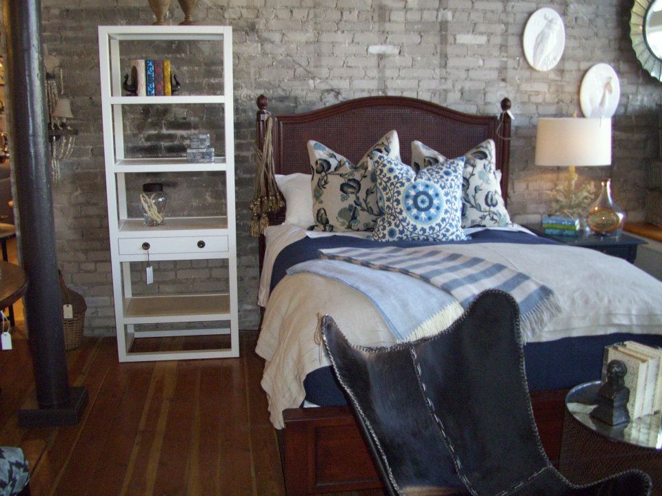 Our building is filled with architectural charm, including original brick walls and reclaimed wide plank floors. I love textiles; from printed linens to graphic textures, the overall palette is soft and neutral with pops of colors added through art work, accessories and pillows.